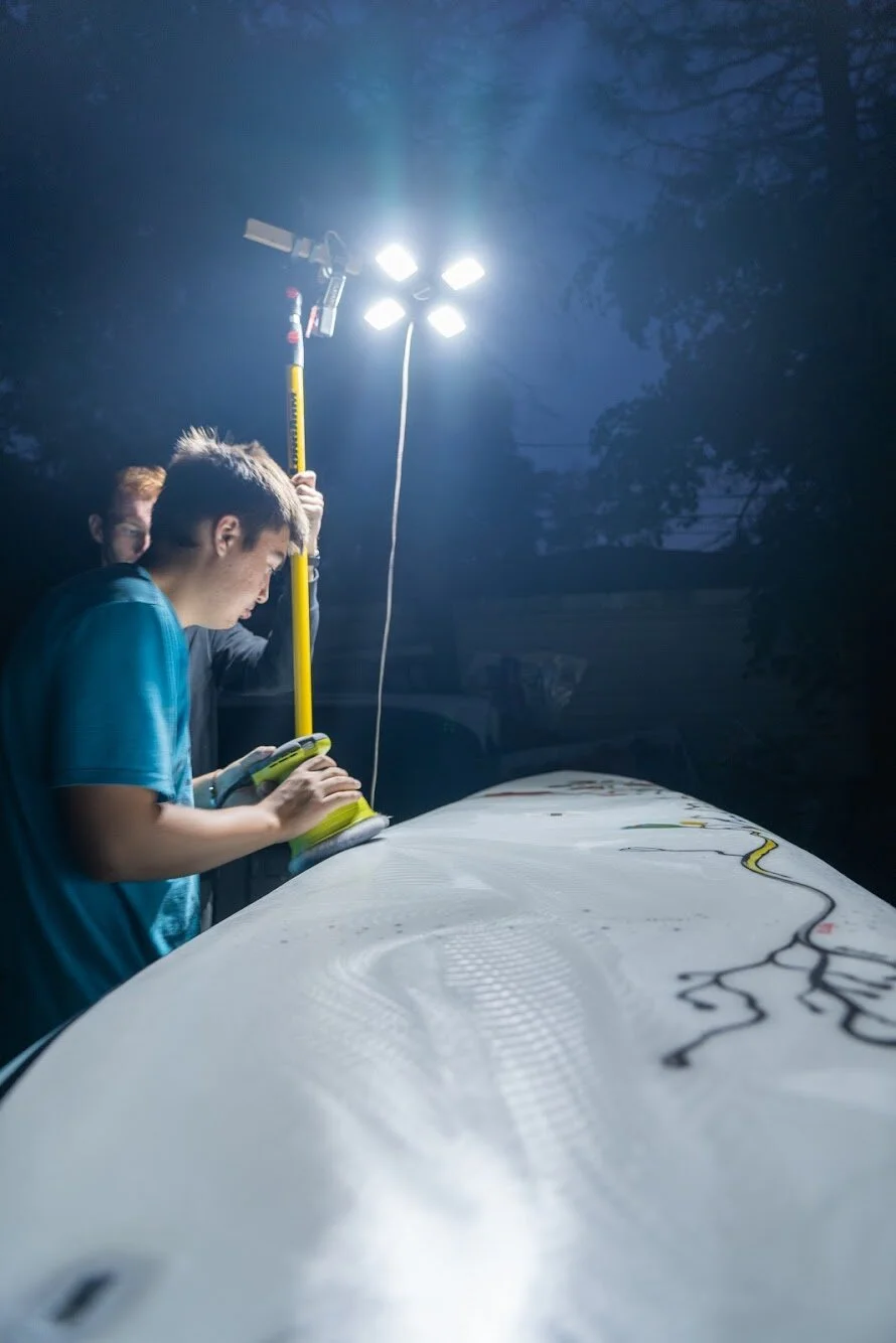 Making my boards allowed me to see how much waste is produced in the making process. I have tried to limit the waste by reusing materials, but it can be challenging. I have used the excess foam from making surfboards and paddle boards as insulation. It is sad to see all this waste and the impact that board making has on the environment. Through my education and research, I hope to find new ways of creating less waste.